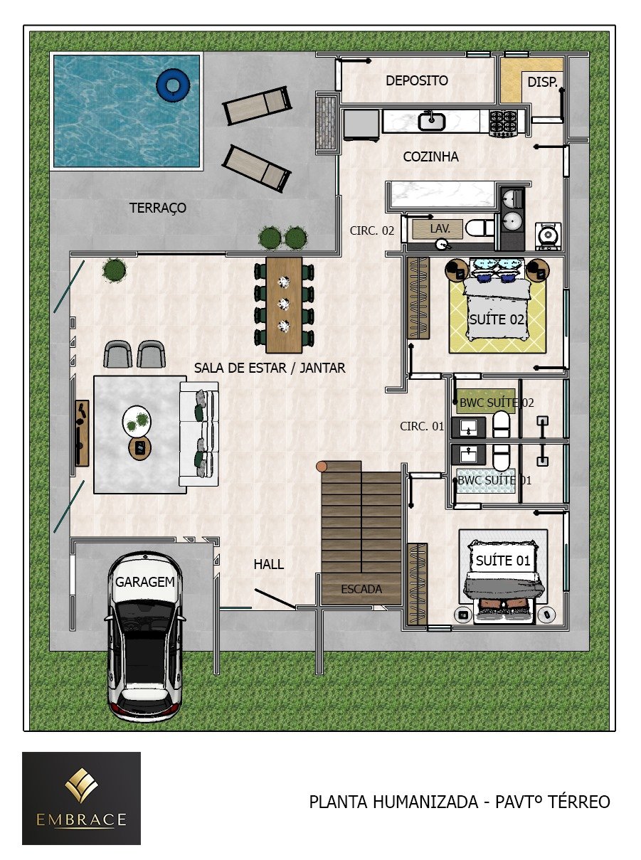 A casa já possui projeto aprovado, mas ainda não teve as obras iniciadas — o que permite ajustes de layout, acabamentos e identidade visual conforme o seu estilo de vida.