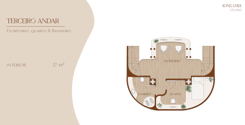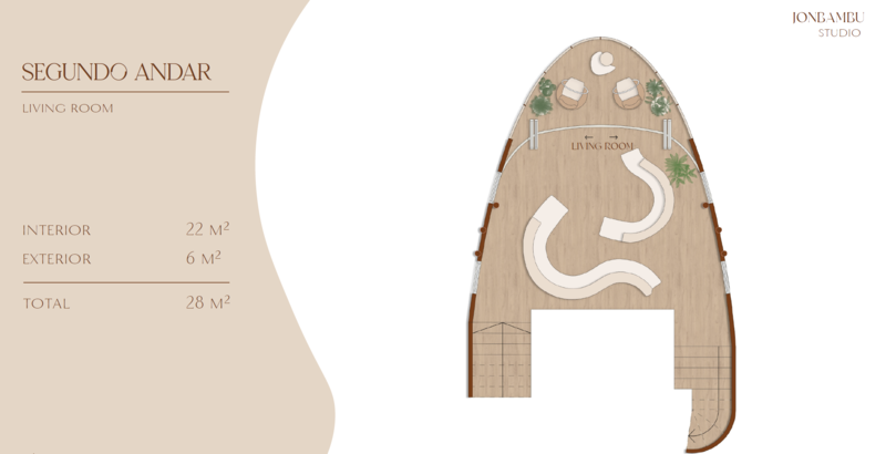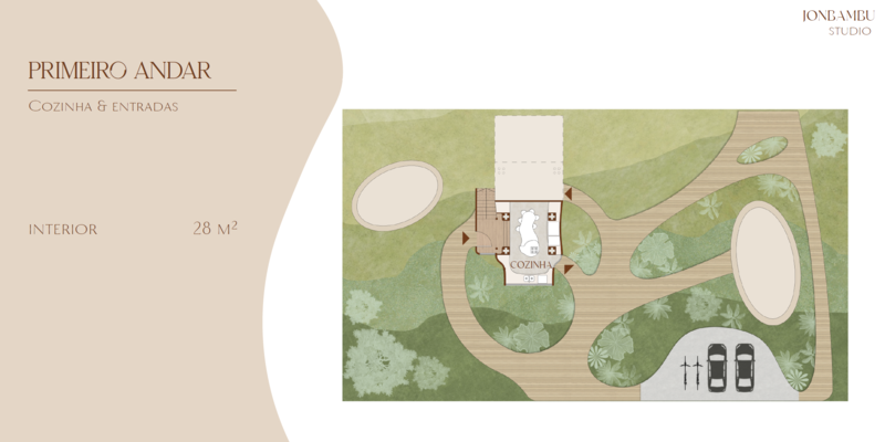 - Estrutura com múltiplos níveis, criando experiências distintas em cada andar