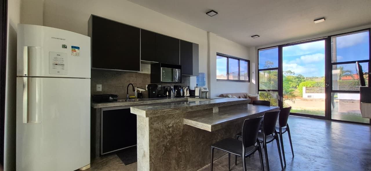 A área externa é o grande destaque: varanda com churrasqueira, piscina privativa, jardim e quadra de beach tênis, perfeita para crianças, jovens e adultos aproveitarem juntos. Um espaço pensado para criar memórias inesquecíveis em meio à natureza de Pipa.