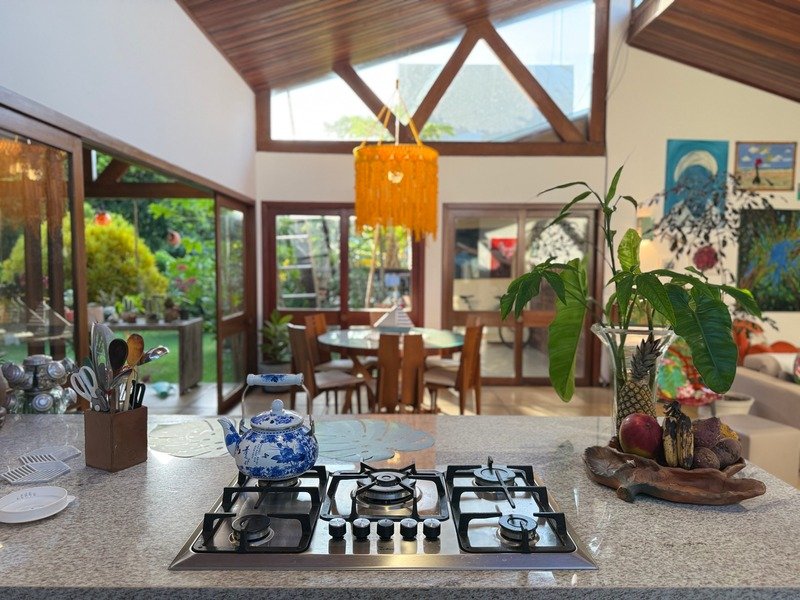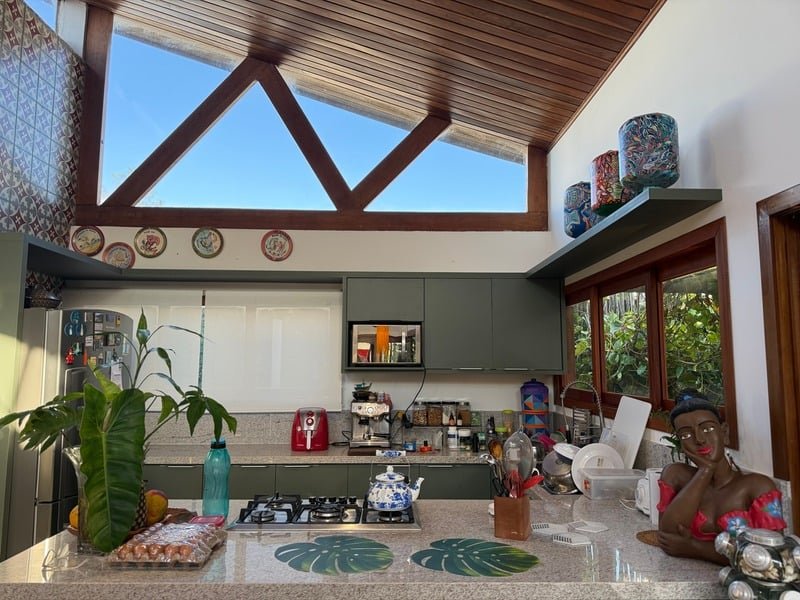 A casa conta ainda com duas cozinhas equipadas, churrasqueira e espaços amplos, coloridos e cheios de vida.